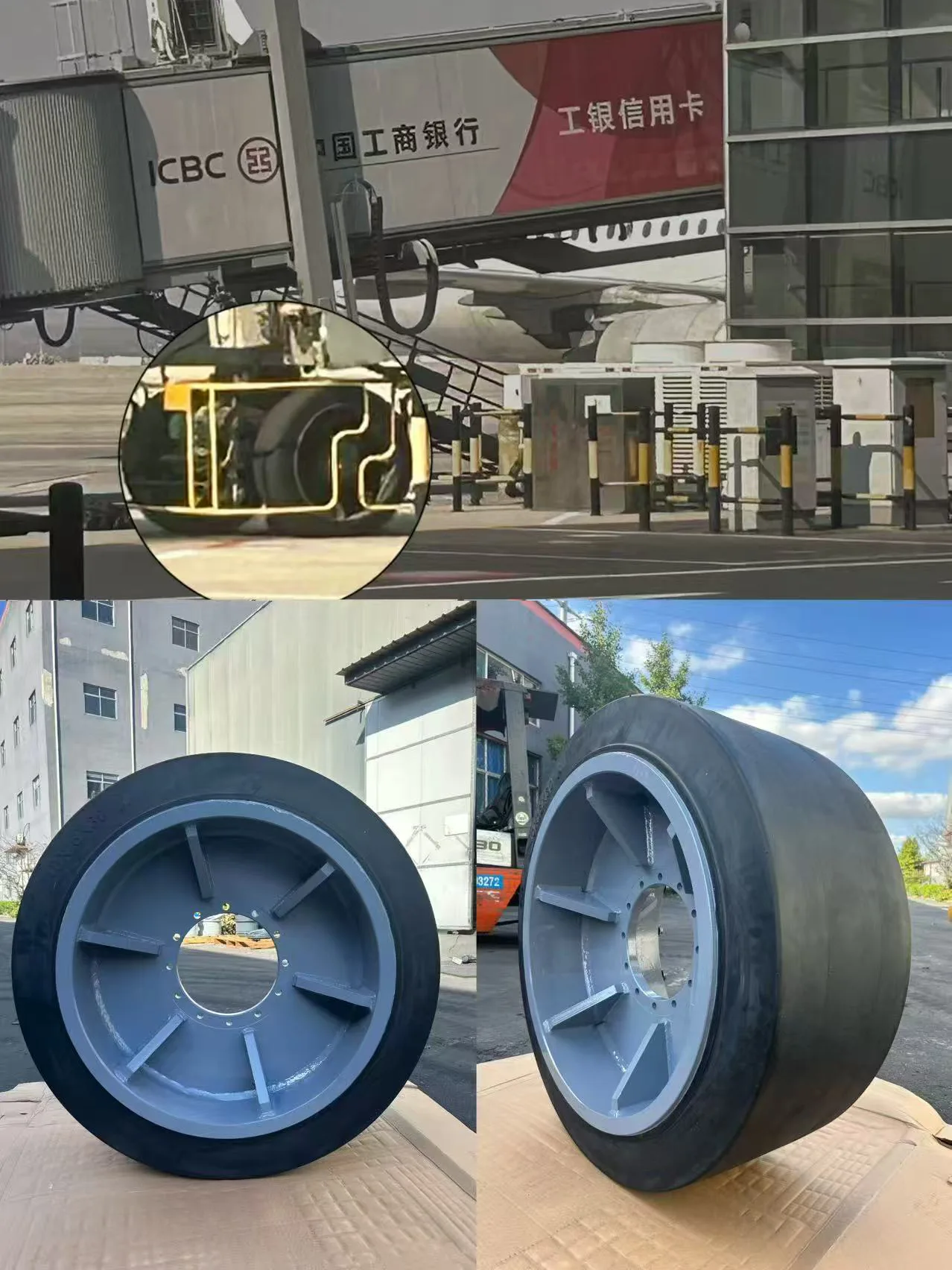 Pnevmatike 40x16x30, uporabljene na mostu za vkrcanje potnikov